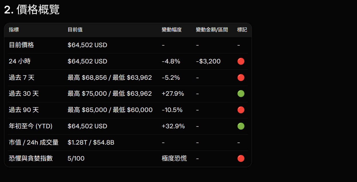 這個 Prompt 強迫 AI 先收集最新資料,並維持固定格式。如果你有使用上的問題,或想增加特定內容(例如鏈上指標),可以在下方留言,我會盡快回覆。