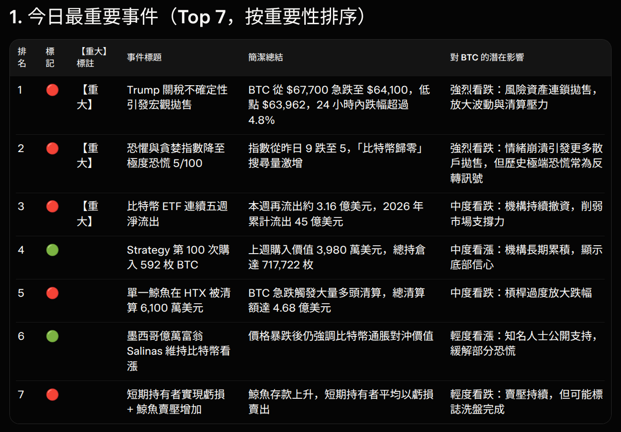 ## **4. 今日最重要事件(Top 5-7,按重要性排序)**